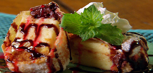 To top off the insane amount of carb-loading from the previous courses calls for something truly monumental and thankfully Paula does not disappoint. She takes one of the best desserts in the history of desserts, the cheesecake, and does the one thing that can make it more decadent than it already is…she deep fries it. And once it’s been deep fried you hit the cheesecake with a rich chocolate sauce and whopping scoop of whipped cream. Scrum-diddly-umptious!
