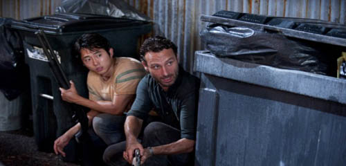 Meanwhile Glenn has come to some bizarre decision that his relationship with Maggie makes him less useful to the group so he can no longer continue to be with her. Yeah, I don’t get it either. A hot, nubile farmer’s daughter wants to have regular sex with him and considering the pickings of the womenfolk were kinda slim before Maggie came on the scene I have to say that Glenn is being a moron.