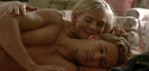 A little later a revved up Jessica arrives at his door all hyper from being in such close proximity to fairies and looking to have meaningless sex with Jason. The new sensitive Jason Stackhouse will have none of it though and wants Jess to leave, telling her that the two of them aren’t friends and he is incapable of having a friendship with a woman that doesn’t involve sex (I guess he has completely forgotten the fact that he and Tara have been friends forever and he never showed any interest in her). Jess sees that Jason is going through some heavy stuff and decides to be a bro and talk it out with him her rampaging fairy fueled libido be damned.
