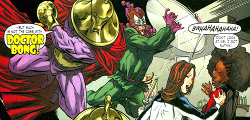 So Doctor Bong has spent his entire career being foiled by a cigar smoking fowl but he also took the time to switch careers a few times becoming a psychiatrist at one point and he even started his own dot com business. On the freaky side of things Bong also developed a stalkerish crush on Howard the Duck’s main squeeze and that became his raison d’etre for many years. I am guessing being spurned in favor of a duck must have been very disheartening because Bong also made the wacky decision to genetically engineer a hybrid duck woman named Fifi that he dressed up in a french maid’s uniform. I can only imagine the vile things that went on between Bong and Fifi in the privacy of their own bedroom.
