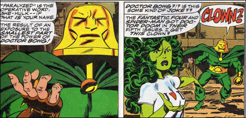 Now I don’t know about anyone else but if I were to take the time and effort to become a super-villain and my first public foray involved going up against a talking duck I think I may have just given up the whole bad guy thing and got a job with a pharmaceutical company. But not Dr. Bong…nope he not only accepted his defeat at the hands of Howard the Duck he decided to become Howard’s arch-nemesis.