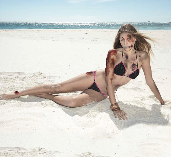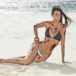 But who thought this was a good idea to begin with? Maybe I am a stick in the mud but I don’t find the idea of bloody and bruised women in bathing suits to be all that sexy.
