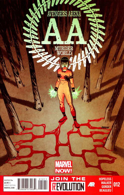 Final Verdict: Nico’s not dead!!!! Huzzah! I admit to not being the biggest fan of this Battle Royale/Hunger Games mash-up for a number of reasons (poor characterization, a focus on unappealing characters, just being a stupid idea executed in a mediocre fashion) but this issue was a bit better than others I have read. Nico from The Runaways used her blood magic to not only come back to life but to exact revenge on the annoying characters that “killed” her. And after an entire year we finally have one of these friggin’ kids making some inroads into figuring out where the hell they all are. The fact that they so easily were manipulated into playing Arcade’s game instead of looking for ways to turn the tables on the Z-list joke of a villain always bothered me.