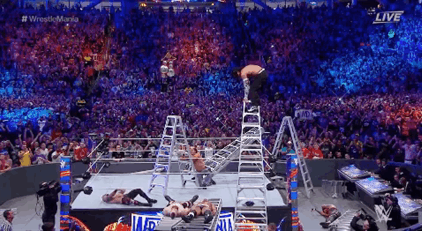 RESULTS: Matt hit a Swanton off of a 20 foot ladder onto Cesaro & Sheamus as they were both laying on ladders which gave Matt the opportunity to climb the ladder in the ring and grab the Raw tag team belts. So The Hardy Boys are