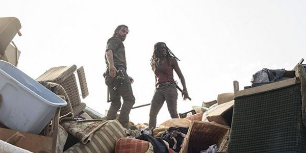 Michonne’s segment was a bit bewildering. It started off well enough with Michonne still reeling from Carl’s death and she and Rick packing up a van to leave the remains of Alexandria. But Alexandria, which looked like a bombed neighborhood in Yemen last episode, was not nearly as ruined in the daylight. Heck, Rick and Michonne’s house was completely untouched. There wasn’t even a broken window. Maybe they plan on re-purposing those sets so a few of them needed to stay intact. I do think a little bit more damage would have been nice since last episode made it seem like Te Saviors were doing some Bush style “shock and awe” for hours.