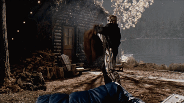 But the kicker to this awesomely bad movie was the virtual reality room set up to show a stereotypical duo of camp counselors at Camp Crystal Lake being derelict in their duties. This was such a fun scene. And I don’t know what it is about Jason brutally murdering folks while they are inside of sleeping bags that just gets me every time.