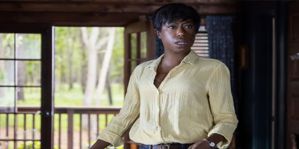 While I liked the idea of a gay couple being at the center of this movie I was a bit underwhelmed by Andrew (Ben Aldridge) and Eric (Jonathan Groff) as said couple. I never bought them as two people who would end up in a committed loving relationship at all. Not in the scenes in the cabin or the flashbacks to their relationship in the real world. The two guys just were not convincing as people who would be with each other.