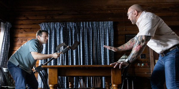 But is was Dave Bautista who really stole this whole movie because shockingly Mr. Bautista is a really good actor. As the leader of The Horsemen and an elementary school teacher, Bautista’s Leonard cuts an odd figure. He is a large, muscular man with a bald head and tattoos stuffed into the “uniform” of a public school teacher. He speaks softly and is constantly reassuring while carrying a makeshift ax-like weapon. And wildest of all is that this large, imposing yet nerdy looking man gives the most soulful performance of this whole movie. Every action he is forced to take seems to rip a piece of his heart out yet he soldiers on doing horrible things in the most polite and tender way possible especially when dealing with little Wen (played by the cute as a button Kristen Cui). Bautista is probably pigeon-holed into certain roles because of his looks but Hollywood should do some more blind casting and let this guy cook in roles that maybe he wouldn’t be the first actor you’d think of because he has the chops for it.