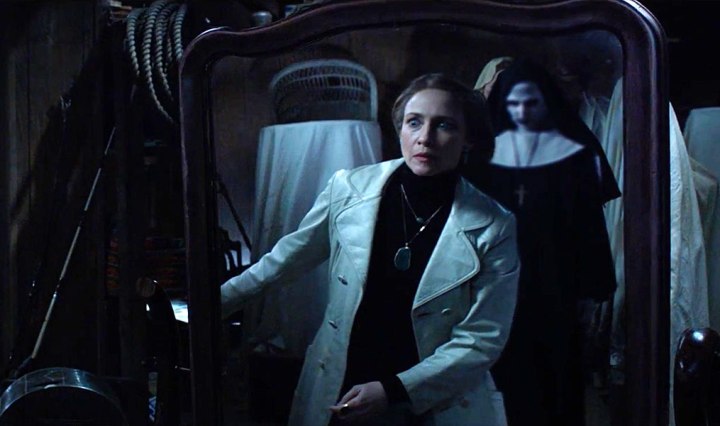 A priest with a haunted past and a novice on the threshold of her final vows are sent by the Vatican to investigate the death of a young nun in Romania and confront a malevolent force in the form of a demonic nun. – (Source)