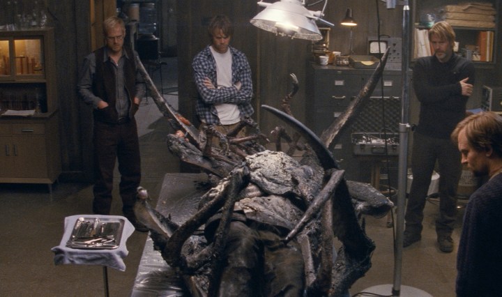 Synopsis: The 1982 John Carpenter directed THE THING is one of the most revered horror movies in the history of horror movies. For my money it is the greatest achievement of Carpenter’s career and the best movie that Kurt Russell has ever had the pleasure of starring in. So it is with all of that heavy praise that the 2011 version of THE THING comes to movies screen across the country. The 2011 movie is a prequel that focuses on the doomed crew of the Norwegian research facility that is discovered by the equally doomed crew of the 1982 movie. The Norwegian’s discover a spaceship buried under the snow covered terrain and a single alien encased in ice. The alien in ice is the impetus for the head of the Norwegian science team to recruit an American paleontologist (Mary Elizabeth Winstead, SCOTT PILGRIM VS THE WORLD) to help with the discovery. Before you know it the shape-shifting alien breaks out of the ice and all hell breaks loose.