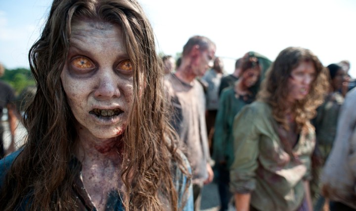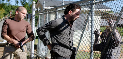 We open this episode with a flashback to days of yore (Season One Episode One to be precise), where the helicopter that Rick saw upon entering Atlanta is now being seen from the vantage point of a bunch of walkers. The whirlybird is quite the attention grabber as every zombie within eye and ear shot decides to follow in the general direction the ‘captor was heading in. Herds being herds they pick up some stragglers along the way and show us that the undead are operating on ZPT (Zombie People Time) since it took them forever to finally arrive at Green Acres. And arrive they did, just in time to hear Carl bust a cap in Shane’s massively lobed head. The scene where the horde of zombies all keep pushing against the fence until it falls was cool and epitomized the awesome relentless nature of zombies.