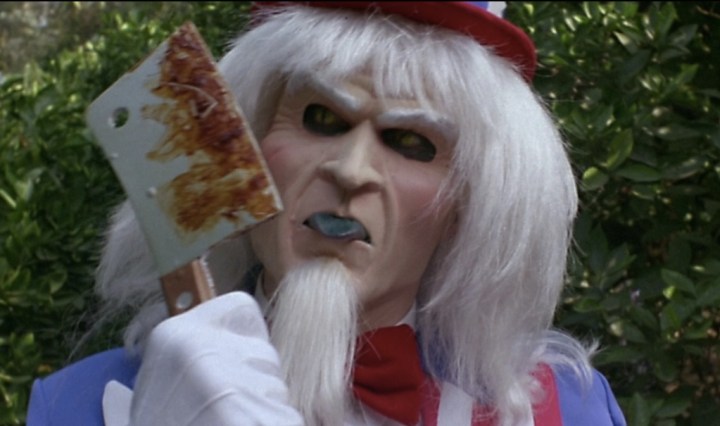 Synopsis:After being killed by friendly fire during the Gulf War, soldier Sam Harper (David Shark Fralick) inexplicably returns from the dead to wreak revenge upon corrupt military men, draft dodgers, tax cheats, and flag burners. His memory is cherished only by his nephew, who doesn’t realize that in life Sam was an angry, violent alcoholic who abused his family members and earned his heroic medals simply by being psychotic on the battlefield. Sam crawls out of his coffin after being brought back to his hometown, steals an Uncle Sam costume and proceeds to wreak havoc on insincere patriots during a Fourth of July celebration. – (Source)